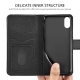 【MULTIFUNCTIONA WALLET CASE】The iphone xr phone case of wallet style with double side magnetic closure,a cash pocket and two card slots,safely and conveniently store your credit cards,receipts and currency.This iphone xr phone case also can be converted into kickstand function,which is ideal for watching videos or reading.
