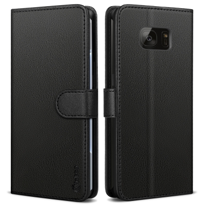 Vakoo Wallet Series Phone Case for Samsung Galaxy S7 Edge - Black