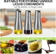 【High Quality & Clear Visible Design】Vakoo olive oil vinegar dispenser set, made of food-grade glass with non slip high-grade refined 304 stainless steel shell for protection. Don't worry to hurt your finger by broken glass ever. Also allow you to distinguish the sauce's type and check its capacity at any time.